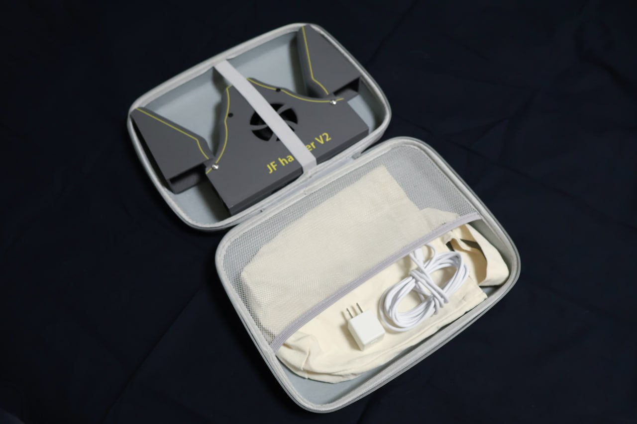 | Full Kit | Hanger • 3 m USB-C cable • 25 W AC adapter (US 2-prong, 100-220 V) • Power-bank holding bag • Carry case |